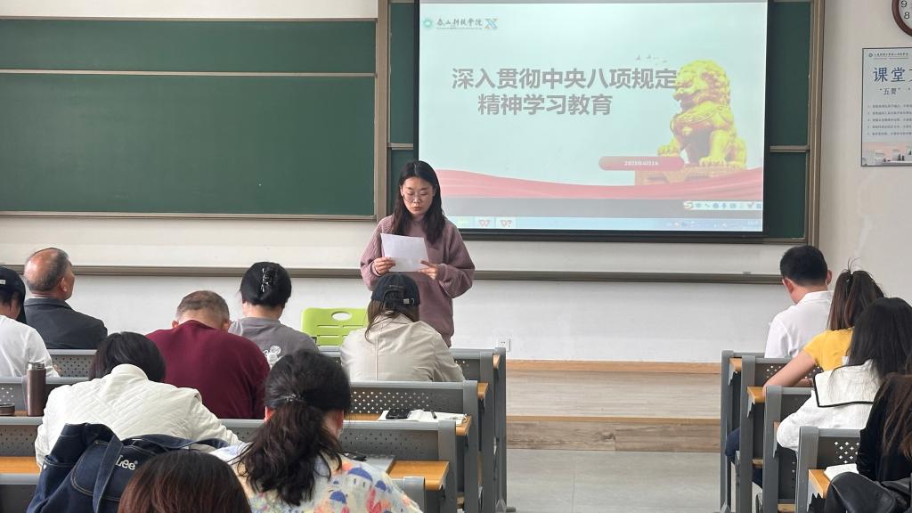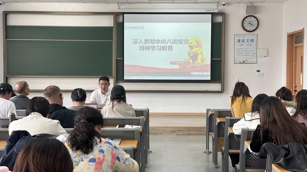 会议重点围绕“中央八项规定精神专题学习”,经理张学银带领全体老师重温中央八项规定具体要求,结合教育系统典型案例开展警示教育。会议强调将持续推进作风建设常态化,要求党员干部严明政治纪律,坚决杜绝形式主义、官僚主义,切实将学习成果转化为“我为师生办实事”的具体行动。太阳成集团122ccvip的老师们深学细悟中央八项规定精神,对标检视作风建设短板,立规明责形成承诺清单,聚力打造勤廉双优的基层战斗堡垒。随后学工副经理、第一党支部书记、辅导员老师代表和教师代表依次进行发言,六位老师发言以后,张经理进行了总结发言。张经理领学深研八项规定首条要义,锚定开学前五周的教学检查工作,强调“四维备课体系”建设,备课重点在于教学目标、对象、教材、教学方法。希望各位老师可以做到“开展浓厚教研之风,深耕教学四备”,大力提升教学质量。