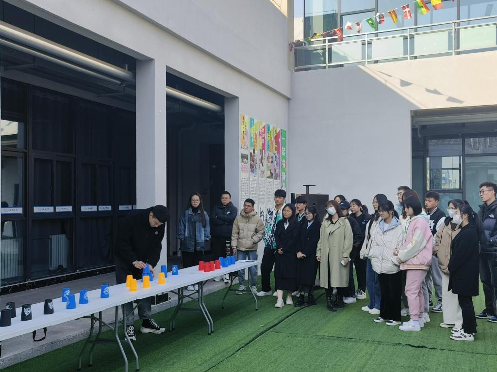 速叠杯是一项新兴的个人或团体运动,这项运动要求选手要以最快的速度把杯子按规律叠成金字塔状后还原。在比赛开始之前,由组织人员为参赛者讲解了速叠杯的一些知识以及比赛中的规则,调动了大家参加比赛的积极性,组织者在活动前撰写活动通知,准备好支持工作,及时将比赛道具下发到各位同学手中,做好了各项工作的安排。
