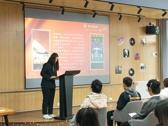窗外秋风飒爽,窗内激情四射——曹晓莹同学为我们带来如火如荼的宪法演讲。宪法,看似离我们很遥远,但其实早已深入我们的日常生活。在曹晓莹同学的演讲中,我们了解到宪法参与了个人成长的全过程,也感受到了在宪法的指引下她的青春奋进路。宣传宪法知识不仅是为了响应国家号召,也是为了更好的维护我们的自身利益,让每一位中国公民感受到宪法的力量。