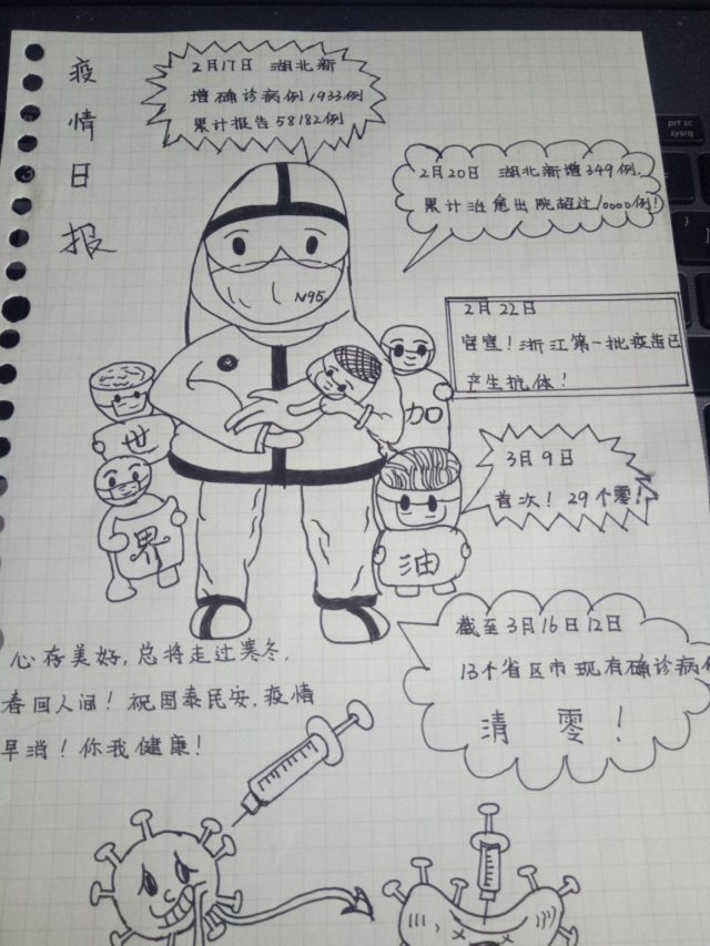 抗疫英雄们,是你们一遍遍挥洒汗水,冲在这场战争的一线,不停辛苦奋战,你像一堵防范病毒的隔离墙在守护着我们。五一劳动节期间,我们以你们为劳动榜样,三个月的奋斗期间,我们以你们为自豪!(文秘19-1梁玉雯)