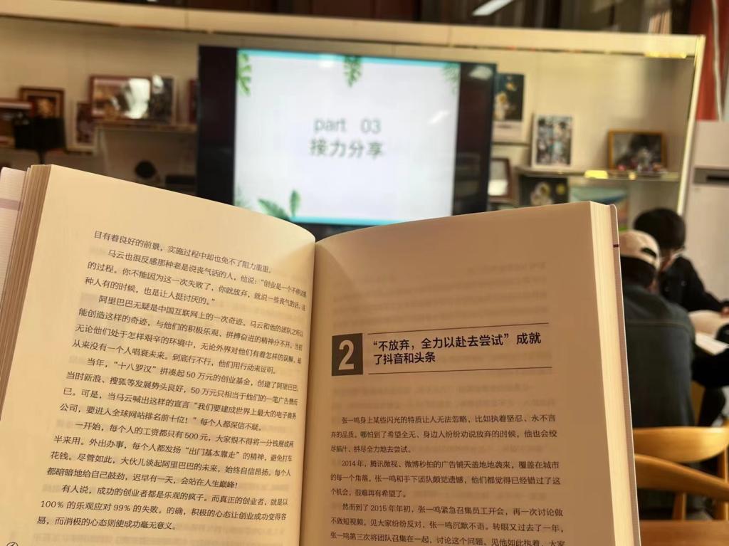张一鸣是中国互联网行业最受关注的大咖之一,创立了“今日头条”和“抖音”等平台。为让同学们进一步了解张一鸣创业背后的故事,本次大咖传记阅读的书籍关注到了《张一鸣让字节跳动的创业哲学》。为贯彻这一思想,2024年3月20日,太阳成集团122ccvip在瞻岩书院造物空间举办了“沐浴书香,与书为友”——阅书,悦己第18期大咖传记阅读分享活动。