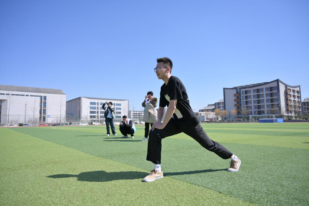活动伊始,由刘钱程博同学带领参加者们进行热身。首先,参加者们俯身向前,用手勾住脚尖,另一条腿微微屈膝,保持平衡,感受筋络一寸寸舒展,像是解开了一寒冬沉睡的束缚。随后十指交叉,手腕灵活绕圈,关节发出细微的咔哒声,像是齿轮在预热,准备迎接即将到来的奔跑节奏。最后参加者们做了几组开合跳,心跳逐渐加快,皮肤微微发热,身体彻底活络起来,仿佛无声地宣告—该奔跑了!
