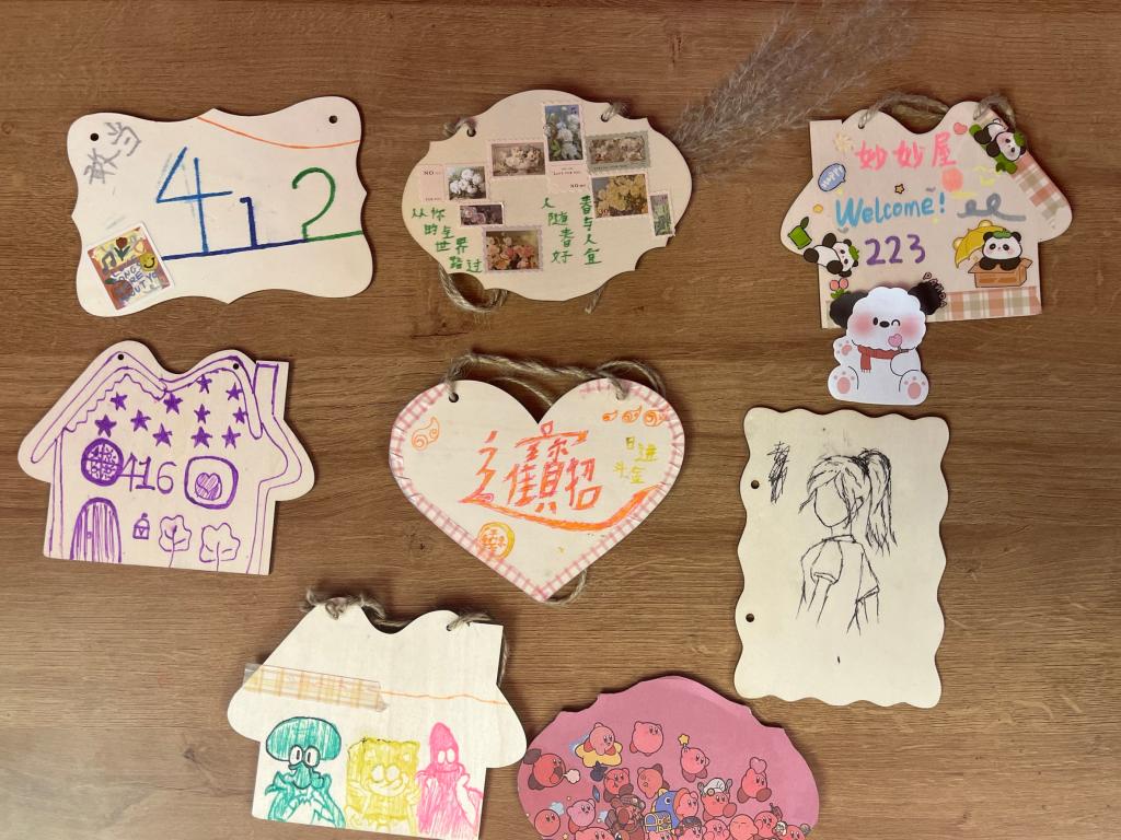 活动接近尾声,同学们创意十足的门牌作品相继诞生。它不仅仅是一块简单的标识,更是宿舍成员们共同努力的结晶。同学们在此次宿舍门牌设计活动中展现出的创造力与协作精神令人眼前一亮,那些承载着同学们奇思妙想的门牌,将在宿舍里熠熠生辉。