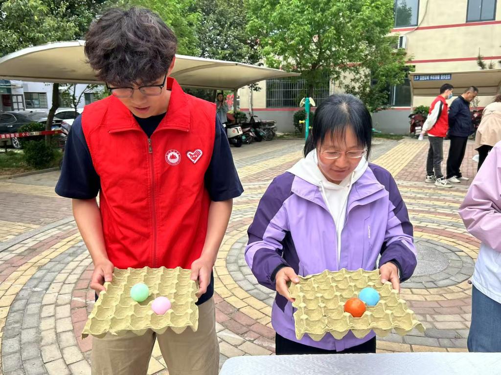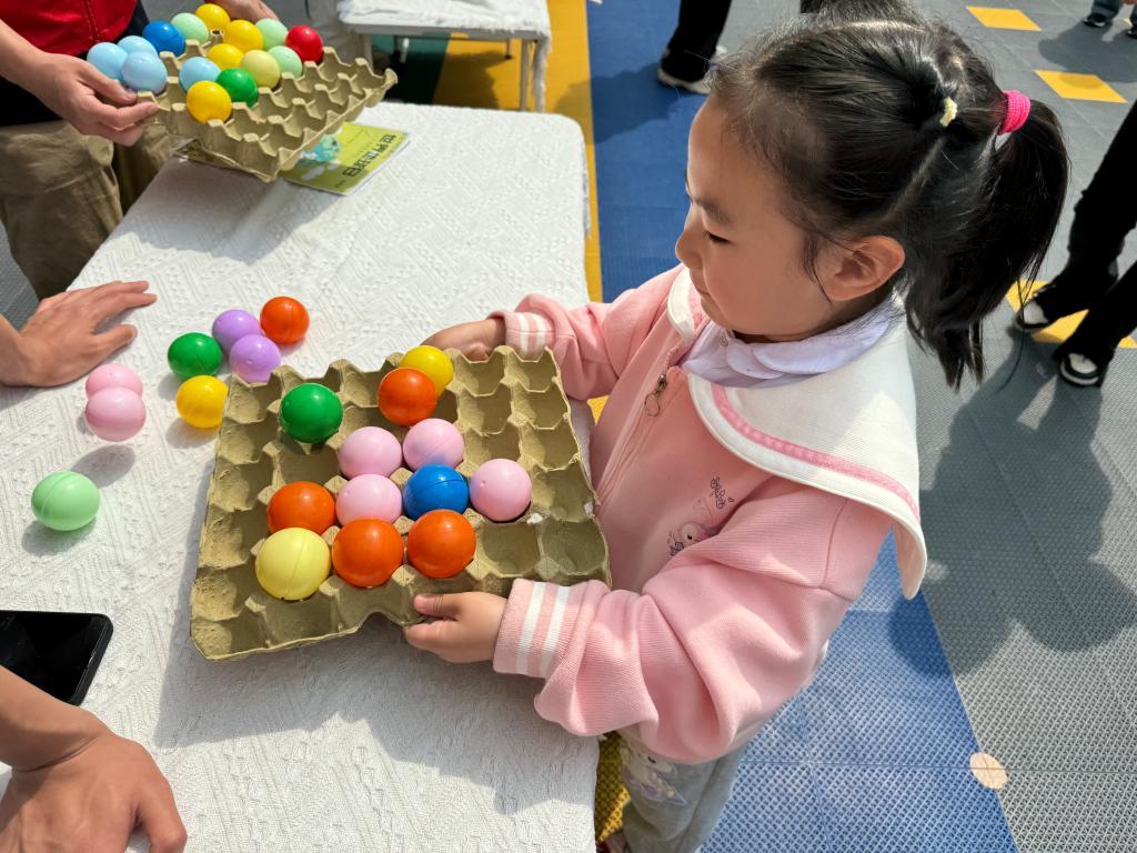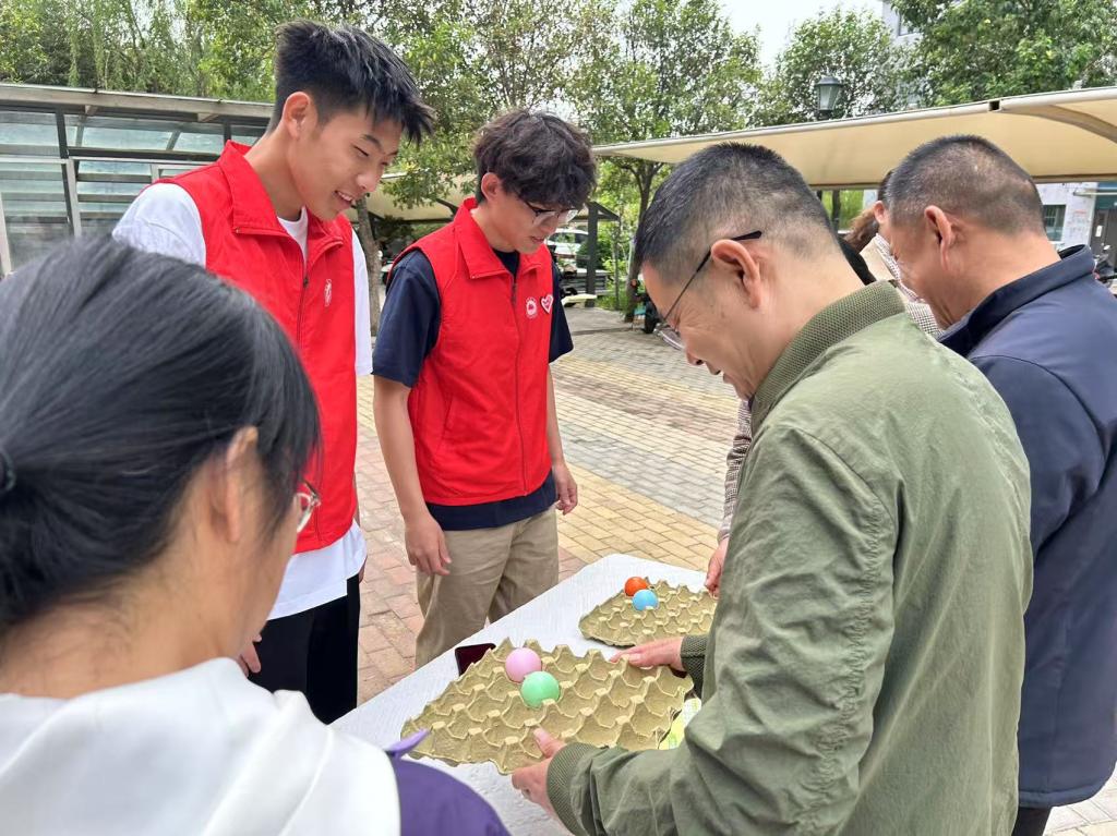 弹跳彩球游戏区参赛居民两两相对,专注地将印有环保标语的乒乓球颠向洞口。“减少白色污染,从自带布袋开始!”“节约用水,点滴珍贵!”每颗小球里的绿色倡议随着弹跳节奏跃入眼帘,仿佛在向人们传递守护地球的决心。一个个彩球里,装载的是一个个环保锦囊,这也让守护地球不再是一句口号,而是融入生活的点点滴滴。