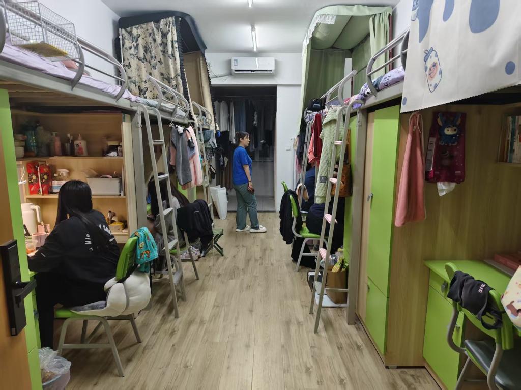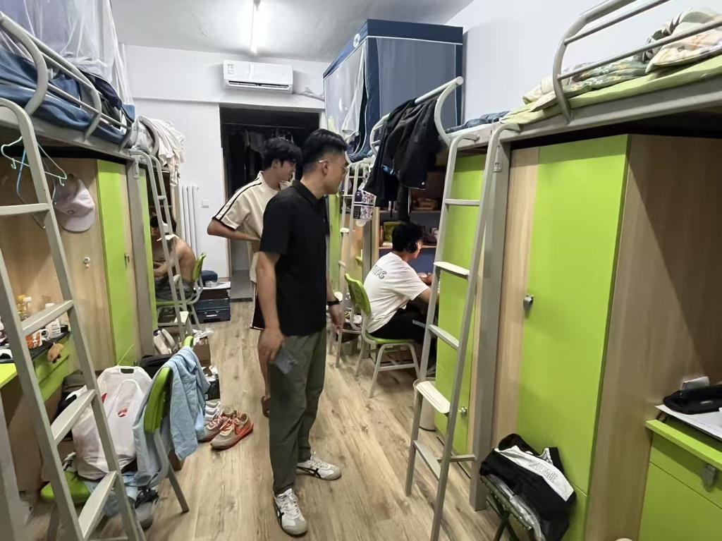 除了旧物改造,本次活动更将劳动教育深度融入宿舍日常管理,重点对宿舍卫生、物品收纳及安全隐患进行了全面检查。由辅导员和员工干部组成的查寝小组深入各宿舍,从劳动习惯养成、劳动技能应用、劳动责任意识三个方面出发:地面清洁不仅是“扫干净”,更是每日坚持的劳动习惯;物品收纳不仅是“摆整齐”,更是对劳动成果有序管理的能力体现。同时针对高温环境下私用违规电器易引发短路、电线杂乱易积热等安全隐患逐一排查,现场提出针对性整改建议。