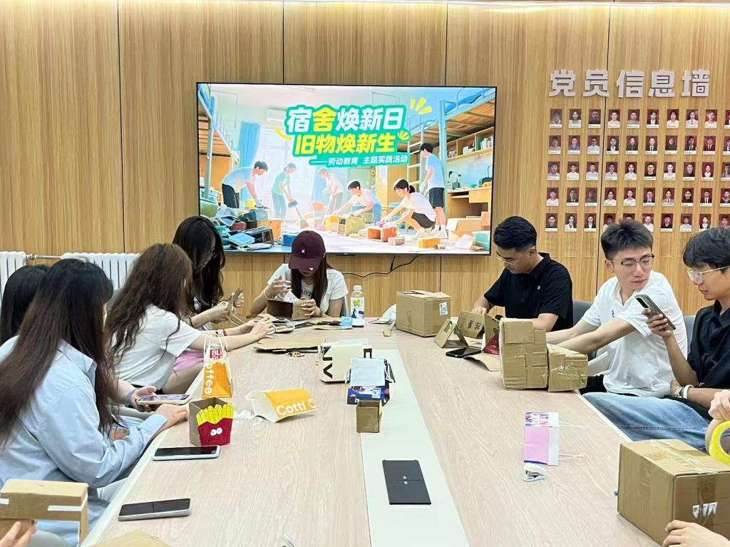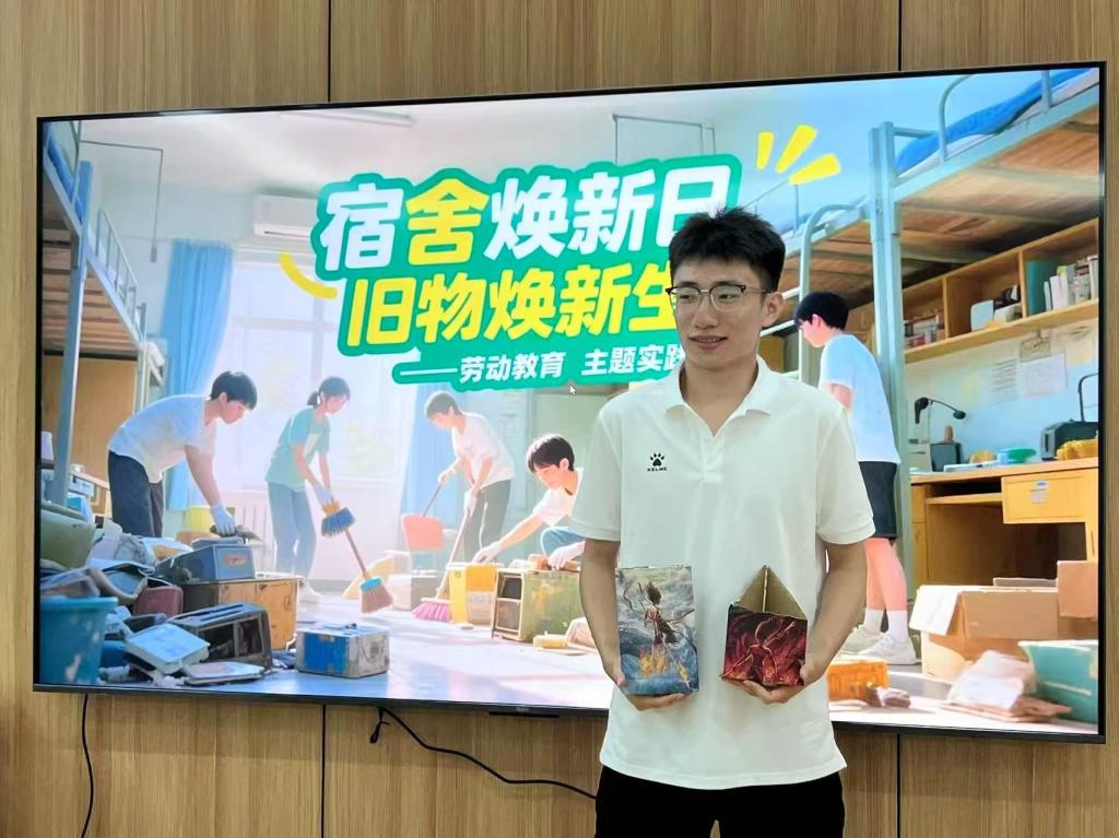 当旧物改造作品全部展示出来,这场充满生活气息的劳动教育课也收获了同学们热烈回响。同学们通过劳动亲手将“废弃物”转化为实用物品,真切感受到环保与生活美学的深度融合,也重新审视了宿舍空间的改造潜力,为构建绿色文明的宿舍生态注入青春动能。