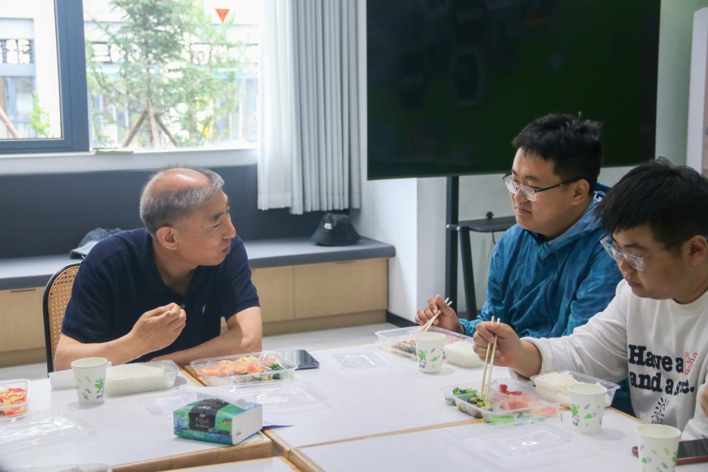桌上的饭菜余温残存,共膳的话语渐次沉淀为思索的静谧,张学银向同学们说到:今天的你们站在时代新坐标上,更要明白强健体魄不仅是个人课题——更是支撑你们专业的支柱,在科技重塑世界的今天,你们要保持蓬勃的生命力,在时代的赛道上跑出属于自己的加速度。