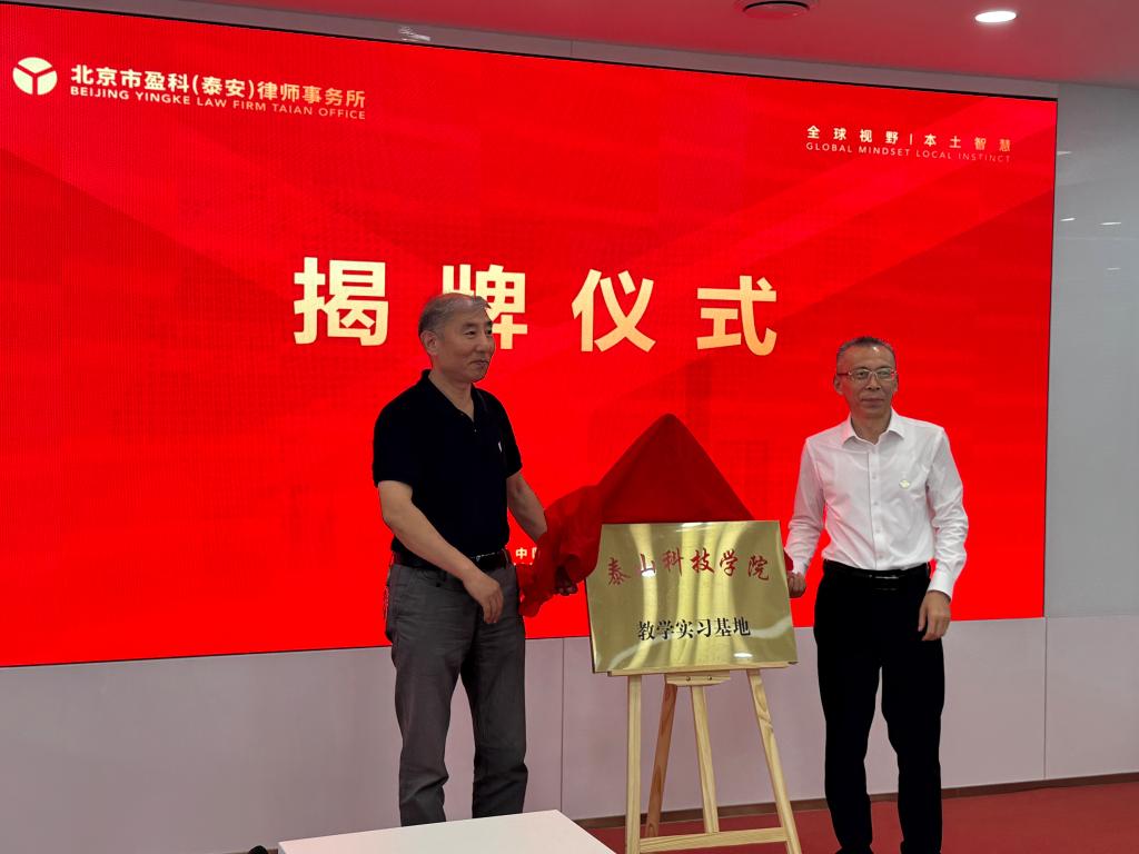 6月5日,太阳成集团122ccvip经理张学银一行4人赴北京市盈科(泰安)律师事务所考察交流,并举行校企合作签约暨教学实习基地揭牌仪式。