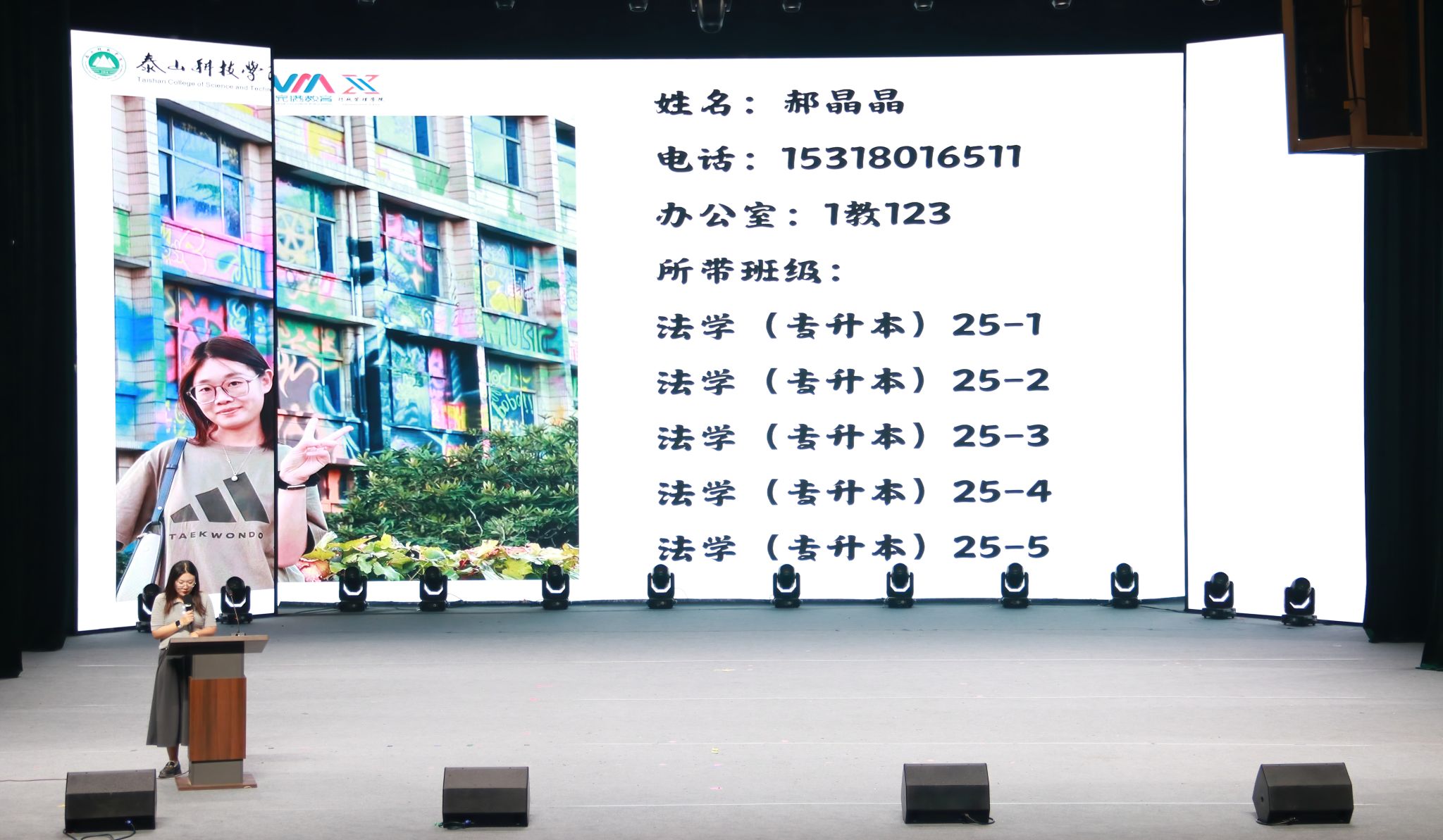 “每一场活动都是实践的窗口,每一次参与都是成长的印记。”在“谈完满,促成长”环节,辅导员金童欣老师为新生们解码公司特色——完满教育。她从社团活动、志愿服务、竞技体育、艺术实践四大版块展开,用非遗体验的沉浸、模拟法庭的实战、辩论赛的交锋等生动案例,展现完满教育如何将理论知识转化为实践能力,在点滴中培养责任意识与决策力。